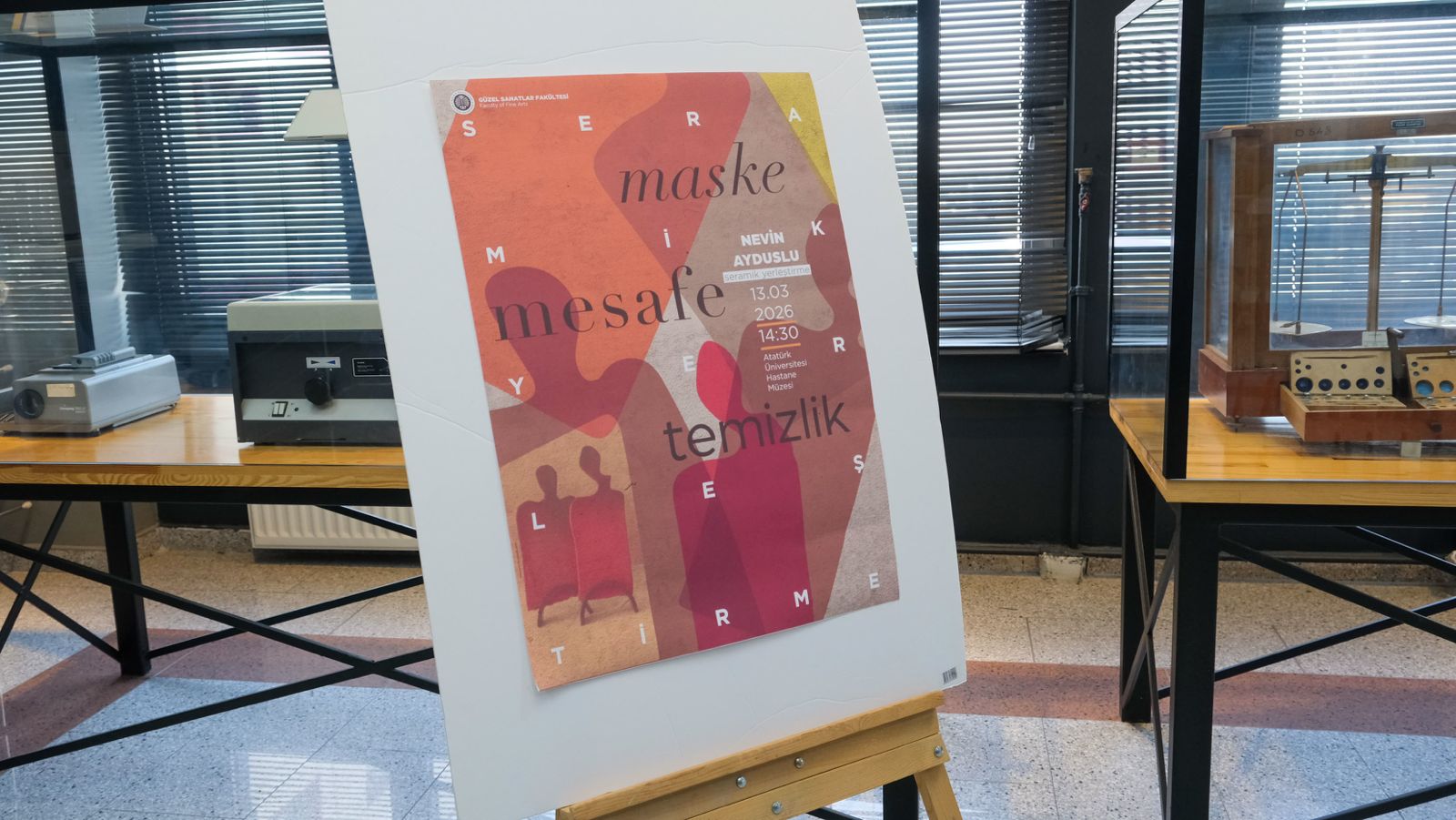 Atatürk Üniversitesi Güzel Sanatlar Fakültesi öğretim üyesi Doç. Dr. Nevin Ayduslu’nun hazırladığı “Maske • Mesafe • Temizlik” başlıklı seramik yerleştirme sergisi, 13 Mart 2026 tarihinde Atatürk Üniversitesi Araştırma Hastanesi Müzesi’nde sanatseverlerle buluştu.