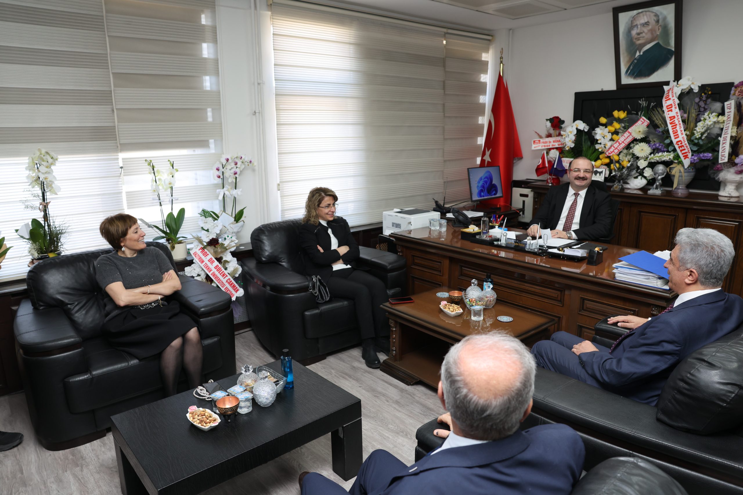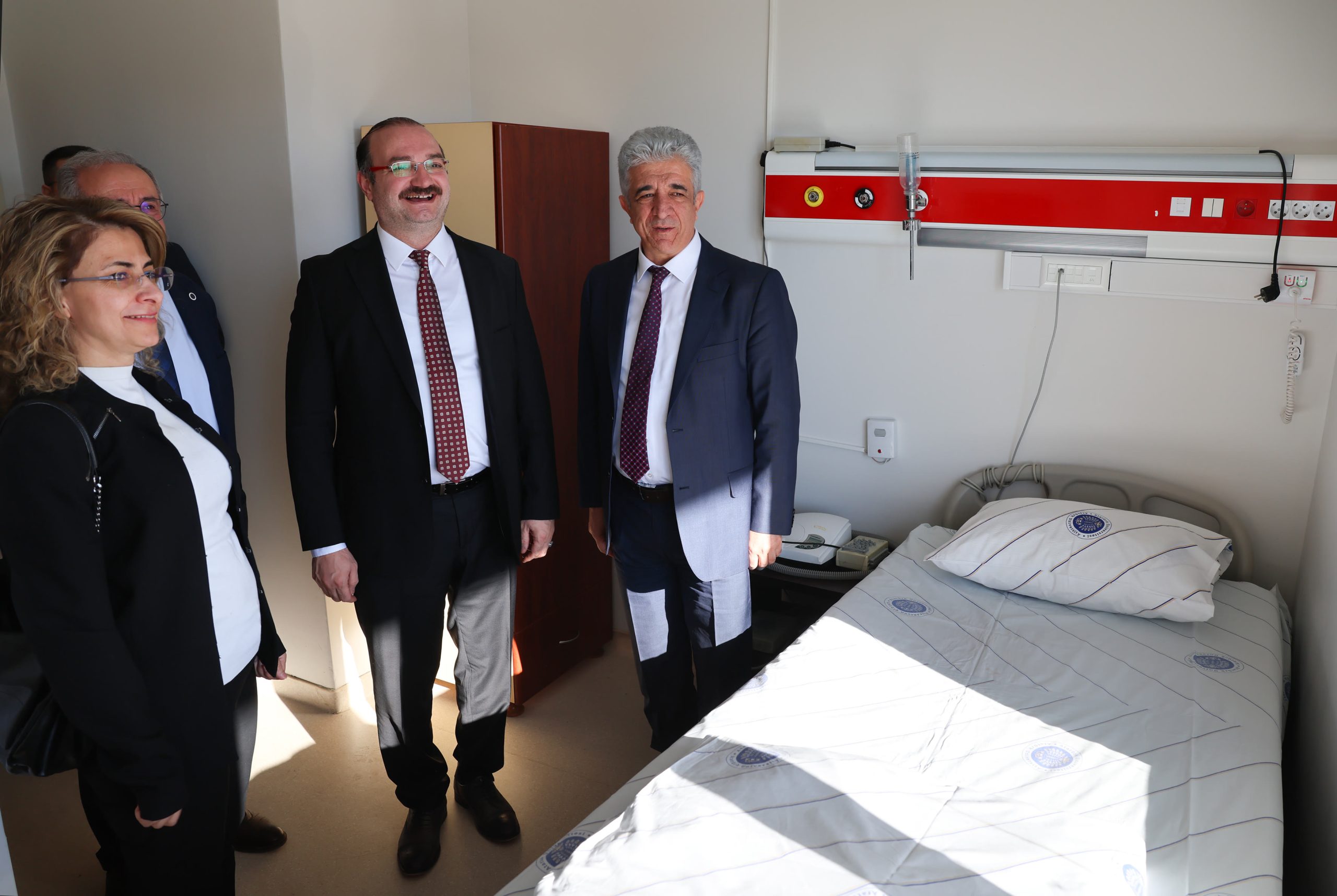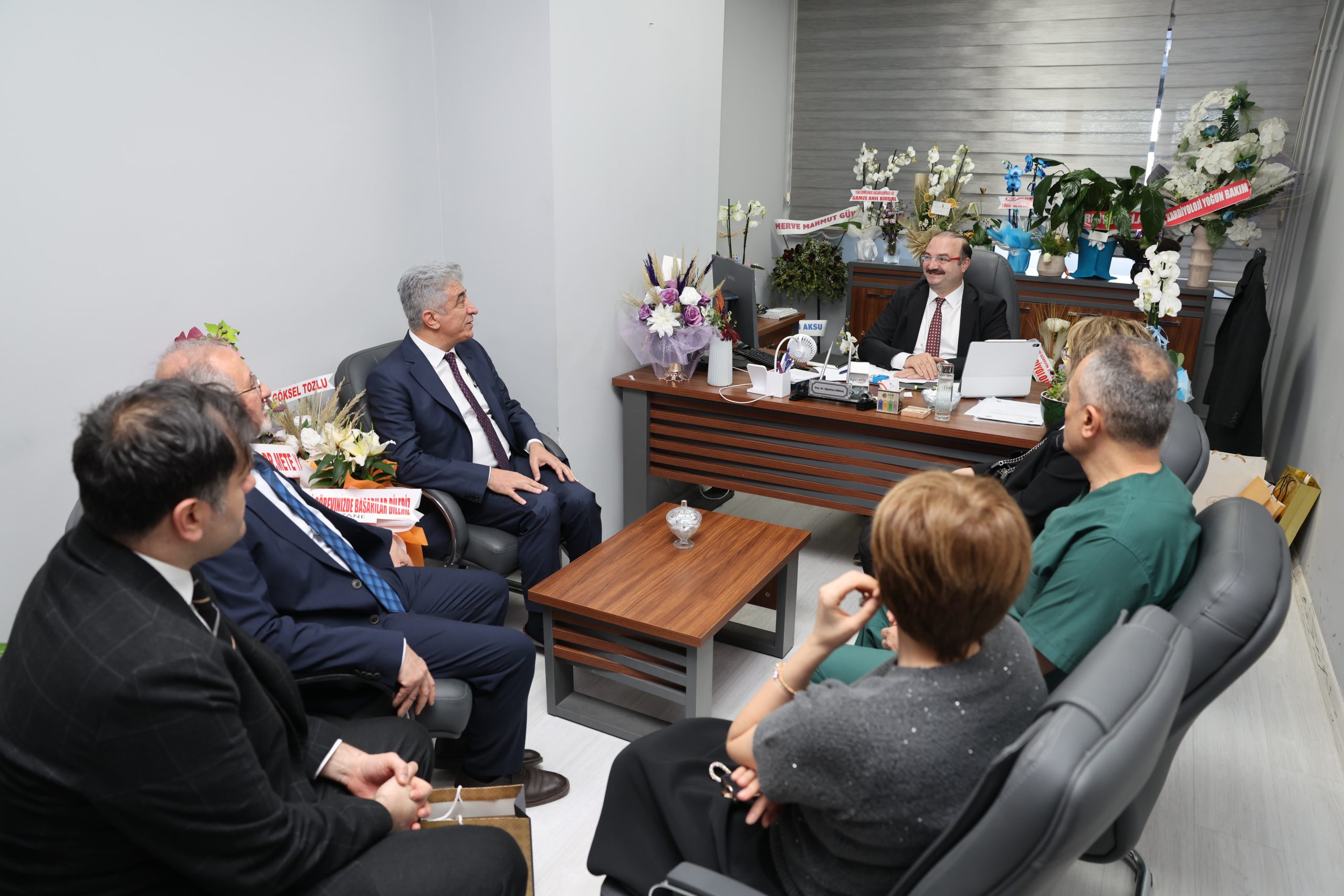 Program kapsamında ayrıca Araştırma Hastanesi Başhekimlik görevinde de bayrak değişimi gerçekleşti. Başhekimlik görevine başlayan Prof. Dr. Atila Eroğlu’na hayırlı olsun ziyaretinde bulunulurken, görevini devreden Prof. Dr. Bilgehan Erkut’a hizmetleri dolayısıyla teşekkür edildi. Rektör Prof. Dr. Ahmet Hacımüftüoğlu, Prof. Dr. Atila Eroğlu’nun bilgi, tecrübe ve vizyonuyla hastaneyi daha ileriye taşıyacağına olan inançlarını dile getirdi.