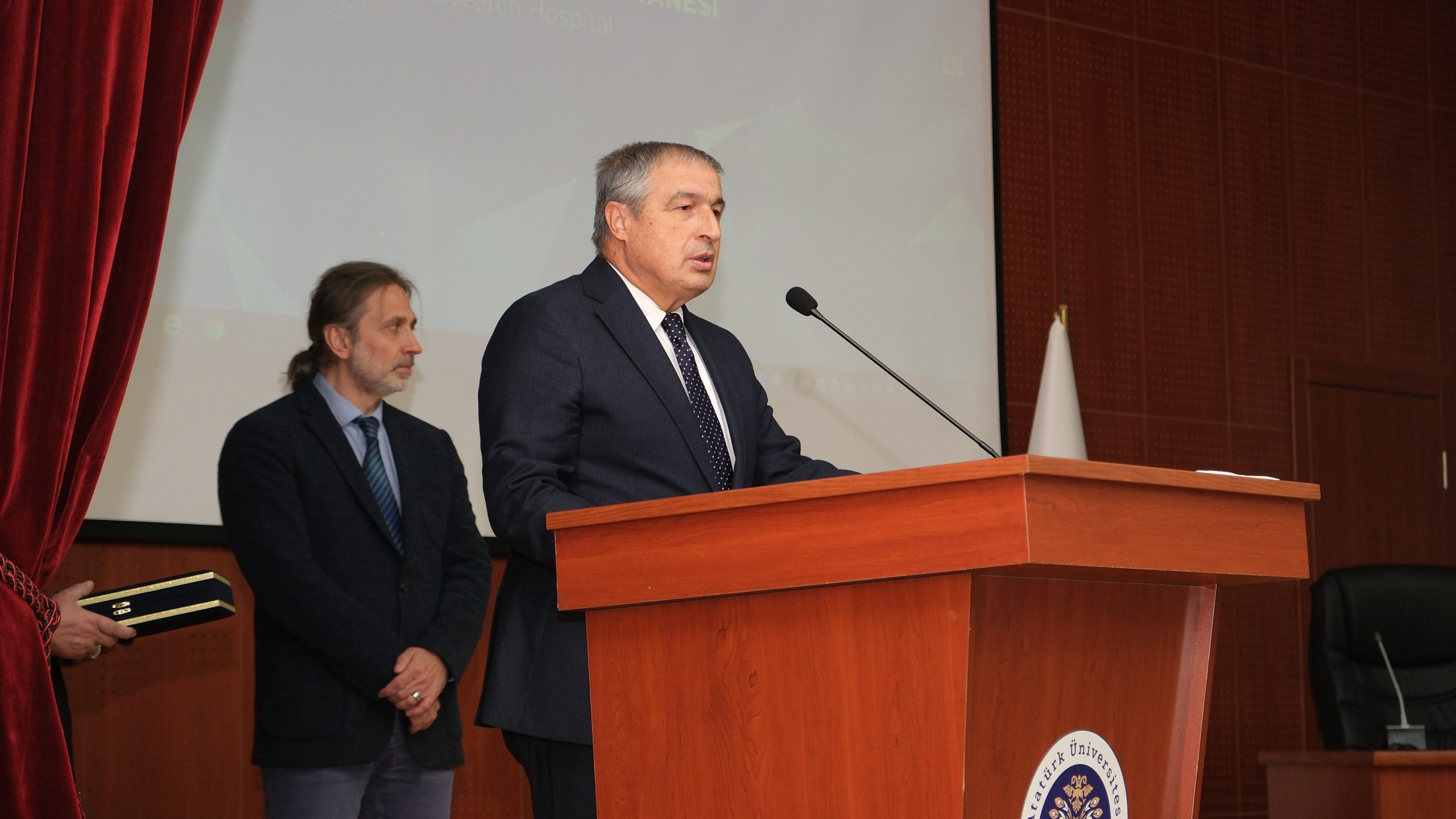 Atatürk Üniversitesi Rektör Yardımcısı Prof. Dr. Hasan Yılmaz ise günün anlam ve önemine dair bir konuşma gerçekleştirdi. Yılmaz, üniversitenin köklü geçmişine değinerek, Atatürk Üniversitesinden mezun olan doktorların ülkemizin önemli görevlerinde bulunduğunu ve üniversitenin görünürlüğünü artırdığını belirtti. Ankara Üniversitesi Rektörü Prof. Dr. Necdet Ünüvar’a iki üniversite arasındaki iş birliğinin güçlenmesine vesile olması dolayısıyla teşekkürlerini ileten Prof. Dr. Yılmaz, mezun hekimlerin üniversitenin kurumsal kimliğini güçlendirmedeki rollerine dikkat çekerek, böylesine önemli bir etkinliğin gerçekleşmesindeki katkılarından dolayı tüm katılımcılara teşekkürlerini iletti.