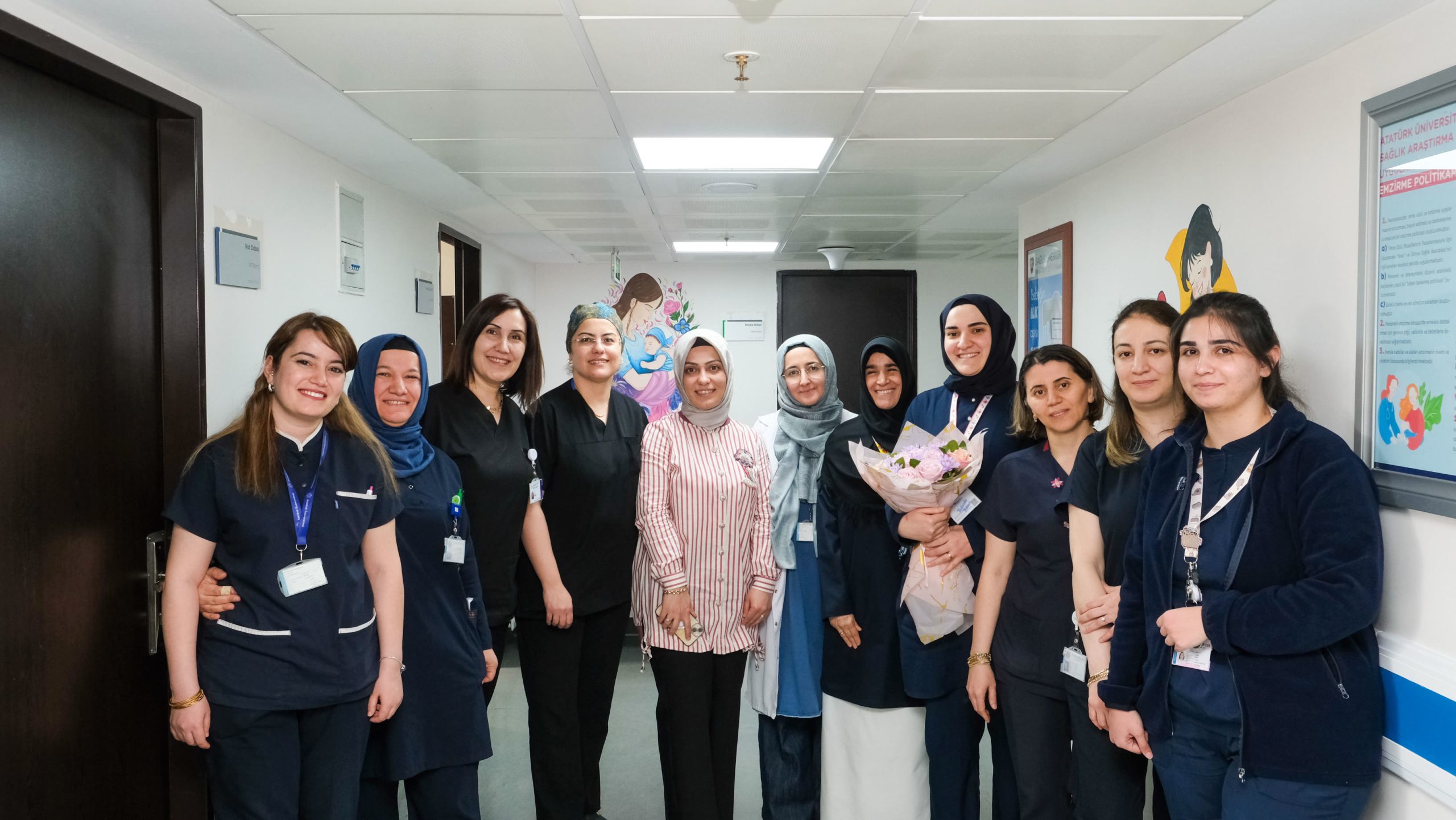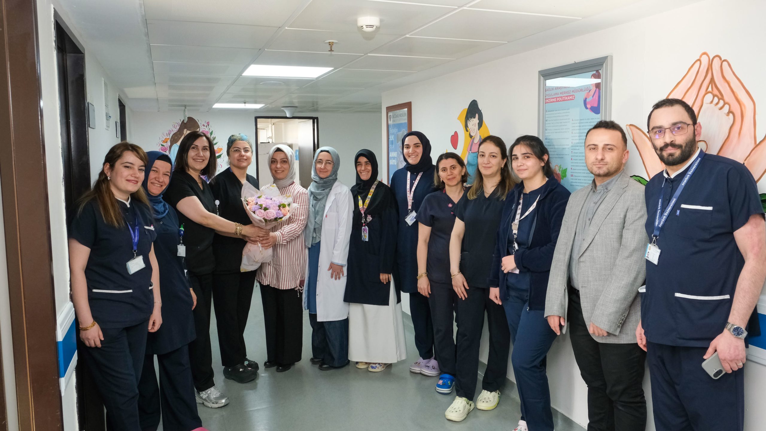 Başhekim Yardımcımız Doç. Dr. Esra DİŞÇİ ve Sağlık Bakım Hizmetleri Yöneticilerimiz, annenin ve bebeğin en özel anlarında büyük bir özveriyle çalışan ebelerimizi ziyaret ederek çiçek takdiminde bulundu.