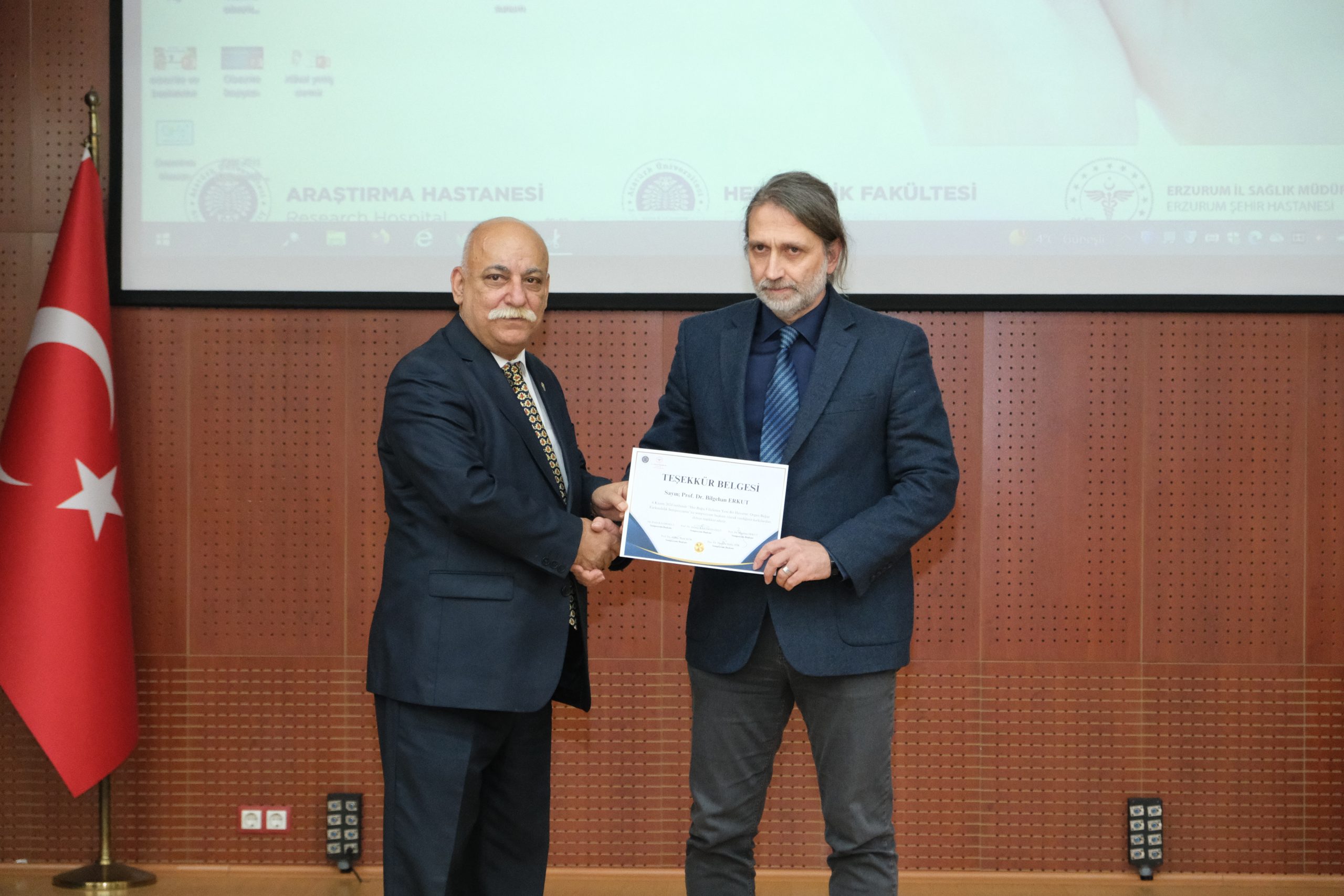 Ardından, Atatürk Üniversitesi Tıp Fakültesi Anesteziyoloji ve Reanimasyon Anabilim Dalı Başkanı Prof. Dr. Nazım Doğan, “Organlarımı Benden Ne Zaman Alacaklar? Beyin Ölümü” konulu sunumunda beyin ölümünün organ bağışı sürecindeki kritik rolünü katılımcılara aktardı.