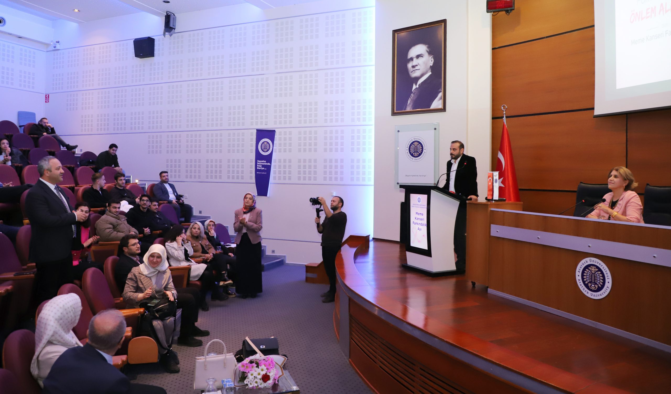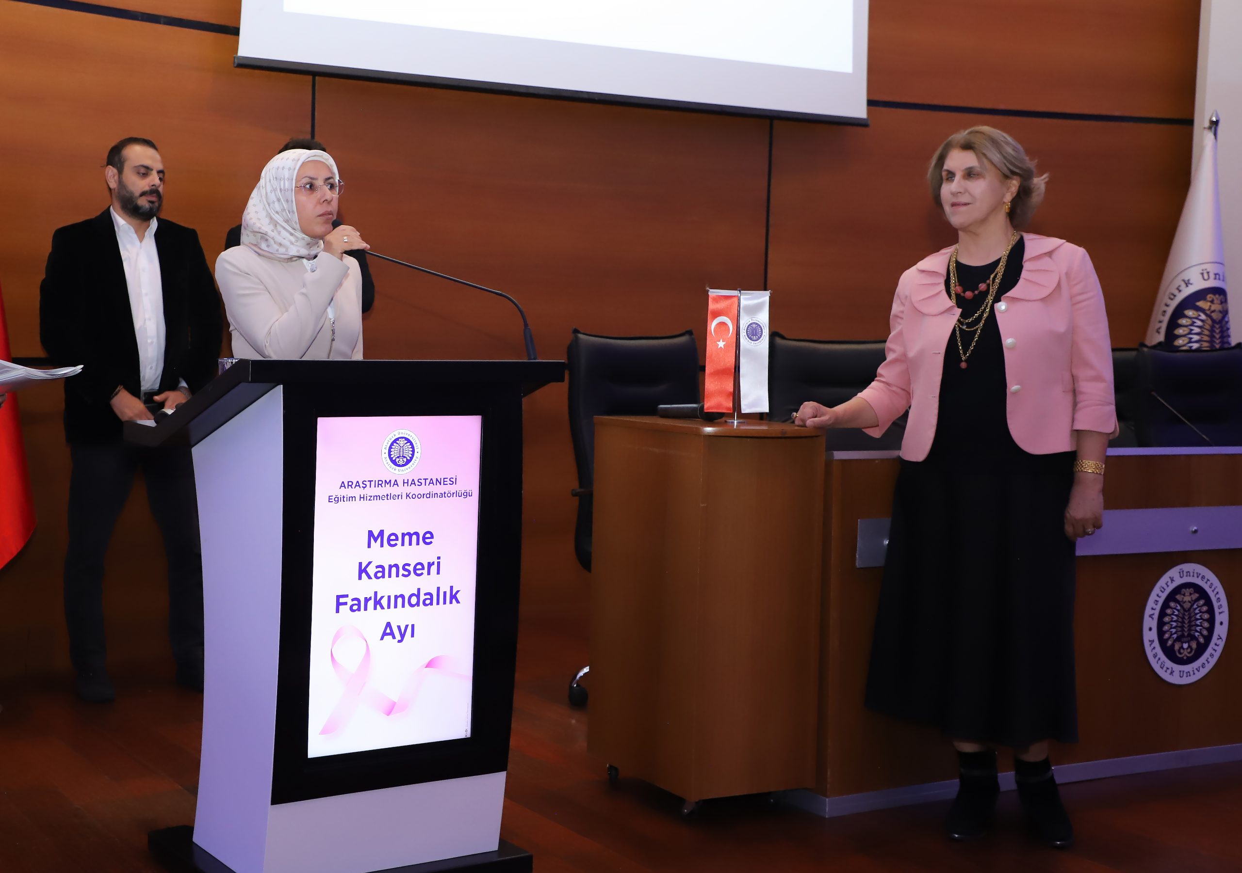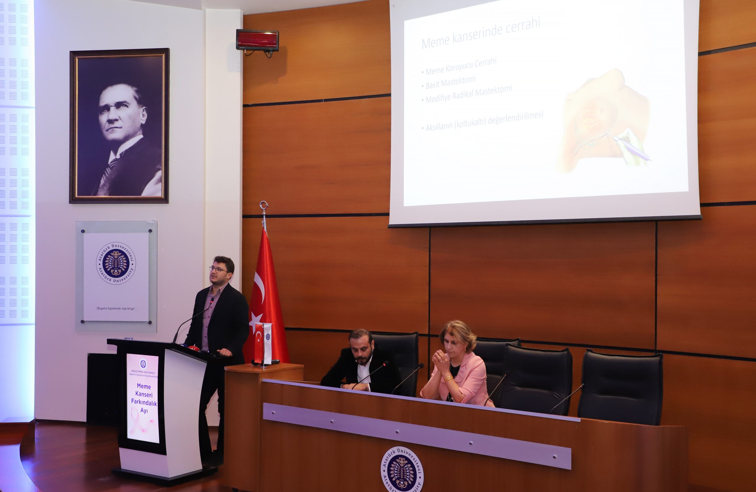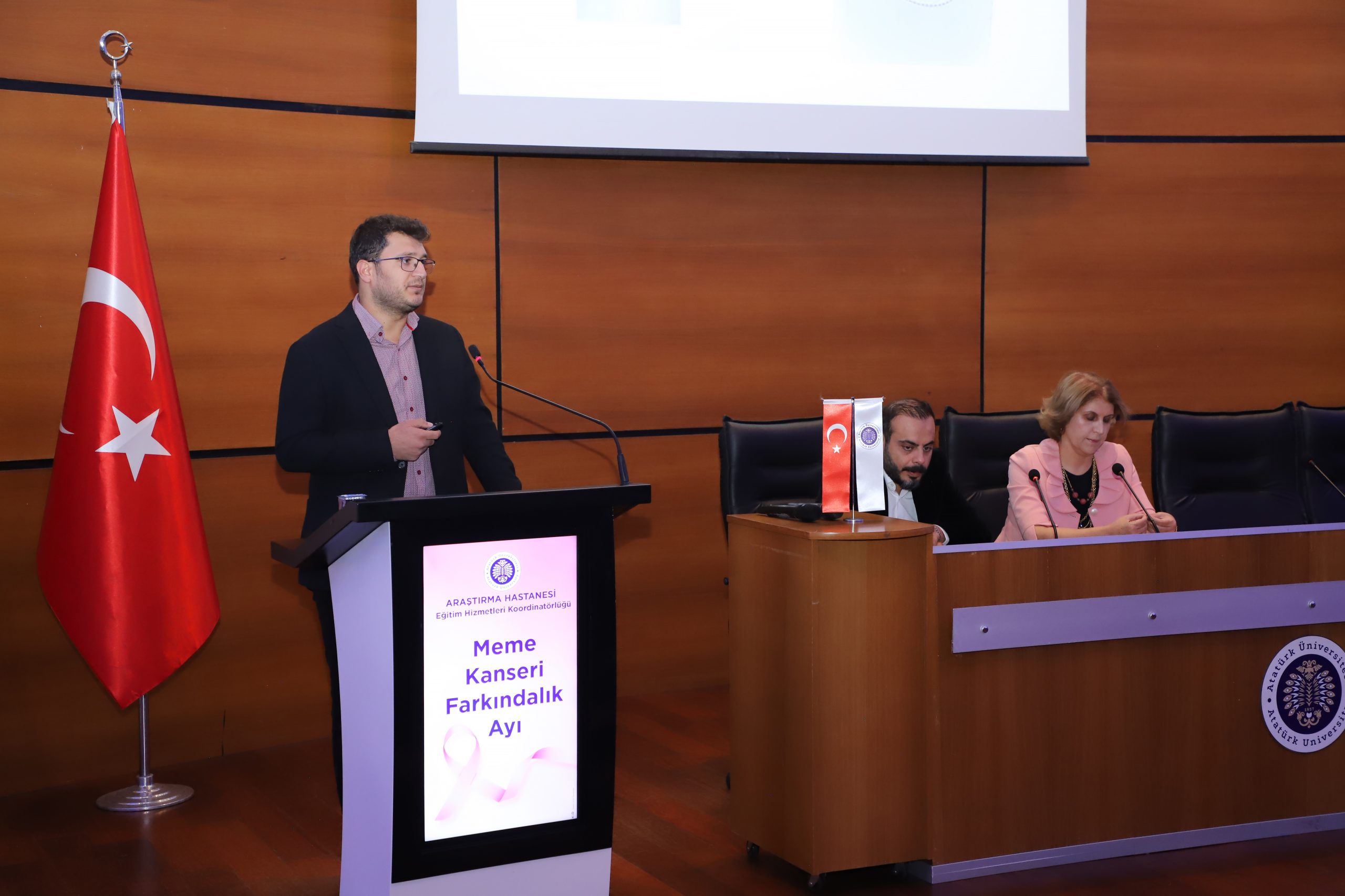 Her yıl Ekim ayında düzenlenen ve dünya çapında 2,3 milyon kadını etkileyen meme kanserine dikkat çekmek amacıyla gerçekleştirilen “Meme Kanseri Farkındalık Ayı” etkinlikleri kapsamında, Atatürk Üniversitesi ev sahipliğinde farkındalık konferansı düzenlendi. Kültür Merkezi Prof. Dr. Kemal Bıyıkoğlu Salonunda gerçekleştirilen konferansta, meme kanserinin taranması, teşhisi ve önlenmesine yönelik önemli bilgiler paylaşıldı.
